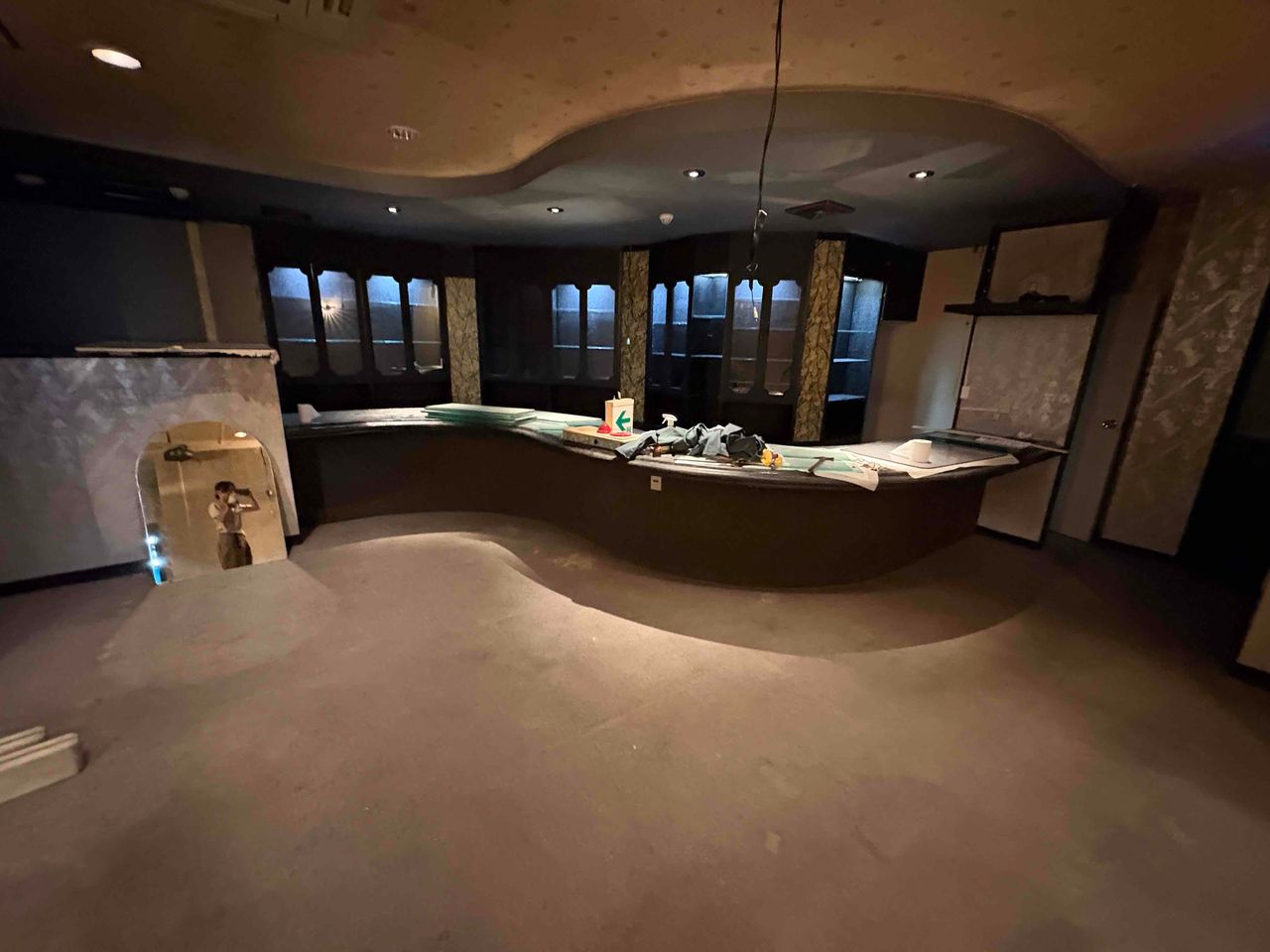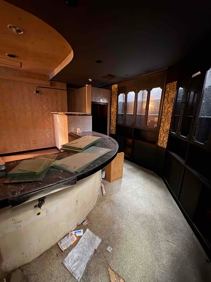 ビル1階の奥側に位置する隠れ家的雰囲気の飲食店区画です。 元々はスナックが入っており以前から使われていたカウンターや棚などの店舗造作が一部残っておりレトロな味わいです。