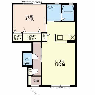 | 間取 | 1LDK(洋室 6.4・LDK 13.6(帖) ) |