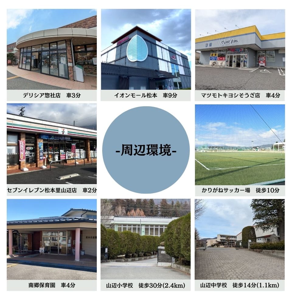 | 通学区 | 松本市立山辺小学校(2400m) 松本市立女鳥羽中学校(1100m) |