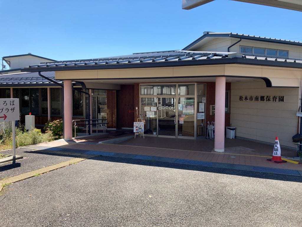 松本市南郷保育園まで1.0km(車4分)一時預かり拠点ともなっていて、3歳未満児の保育需要も多い保育園です。こどもプラザや福祉ひろばが同一棟に併設されている複合施設であり、地域の方々との交流も行われています。