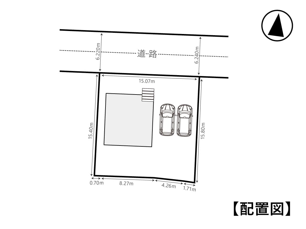 | 接道状況 | 方角:北 道路幅員:6.2m 公私区分:公道 接面:15.07m |