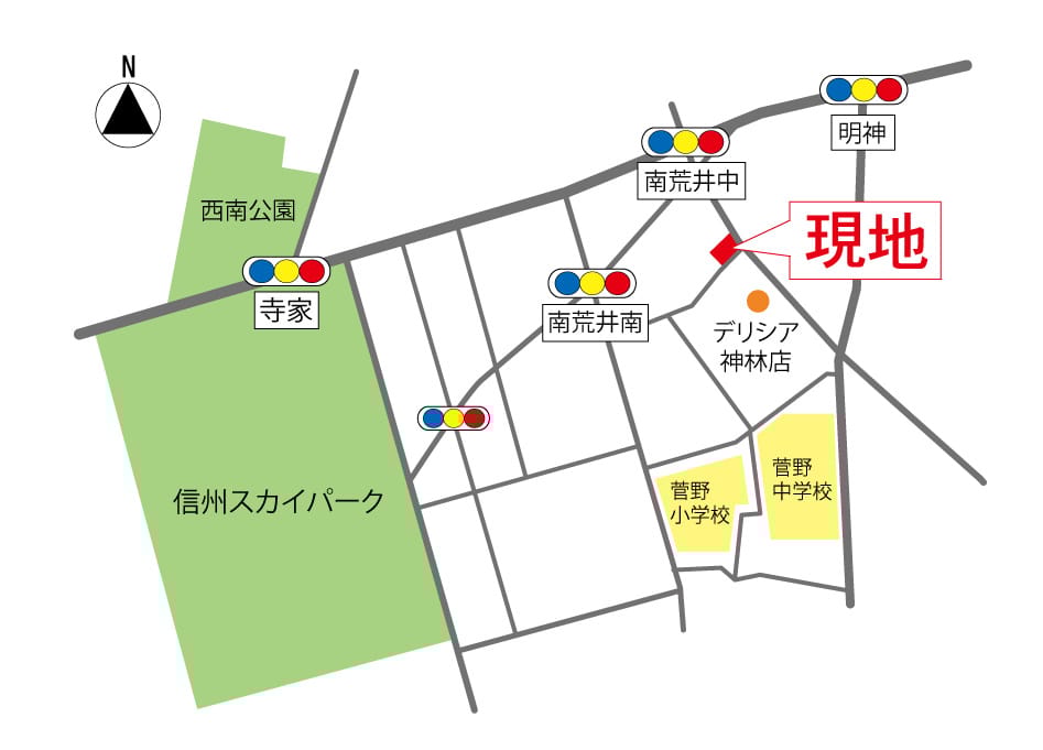 | 交通 | 電車:篠ノ井線村井駅 距離2800m 高速道路:長野道 塩尻北I.C. 車8分 |