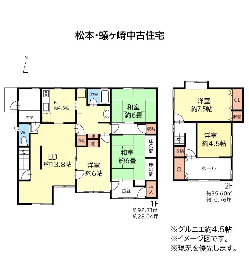 | 備考 | 5LDK/1階:LDK約13.8帖 洋約6帖 和約6畳・約6畳 2階:洋約7.5・約4.5帖 グルニエ約4.5帖 ※現況有姿 ※公簿売買 ※前面道路 セットバック要 ※測量後の引渡し ※外物置場 ※未登記建物有(登記後の引渡し) ※都市ガス:前面道路本管敷設及び引込管有 ◎エアコン2台 ◎駐車複数台可能 □都市計画法 市街化区域 □松本市景観条例 景観区分:市街地景観区域 景観類型地:松本北地区 □松本市屋外広告物条例 住専地域(一部・禁止) 第2種許可地域(一部・要協議) □建築基準法第22条区域 □居住誘導区域 中心市街地 信州大学周辺エリア □埋蔵文化財包蔵地 遺跡名:蟻ヶ崎遺跡 【周辺環境】 ・柿澤内科医院 約20m 徒歩約1分 ・信州大学付属病院 約1.8㎞ 車約5分 ・蟻ヶ崎郵便局 約150m 徒歩約2分 ・ローソン蟻ヶ崎店 約500m 徒歩約7分 ・デリシア桐店 約1.6㎞ 車約4分 ・松本市役所 約1.4㎞ 車約5分 |
