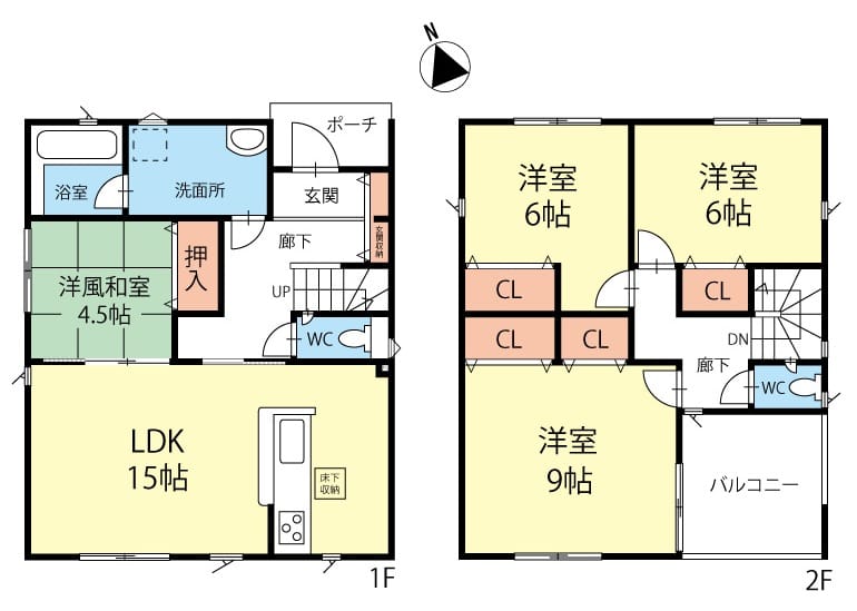 - 間取4LDK(1階:LDK、和室・2階:洋室×3)