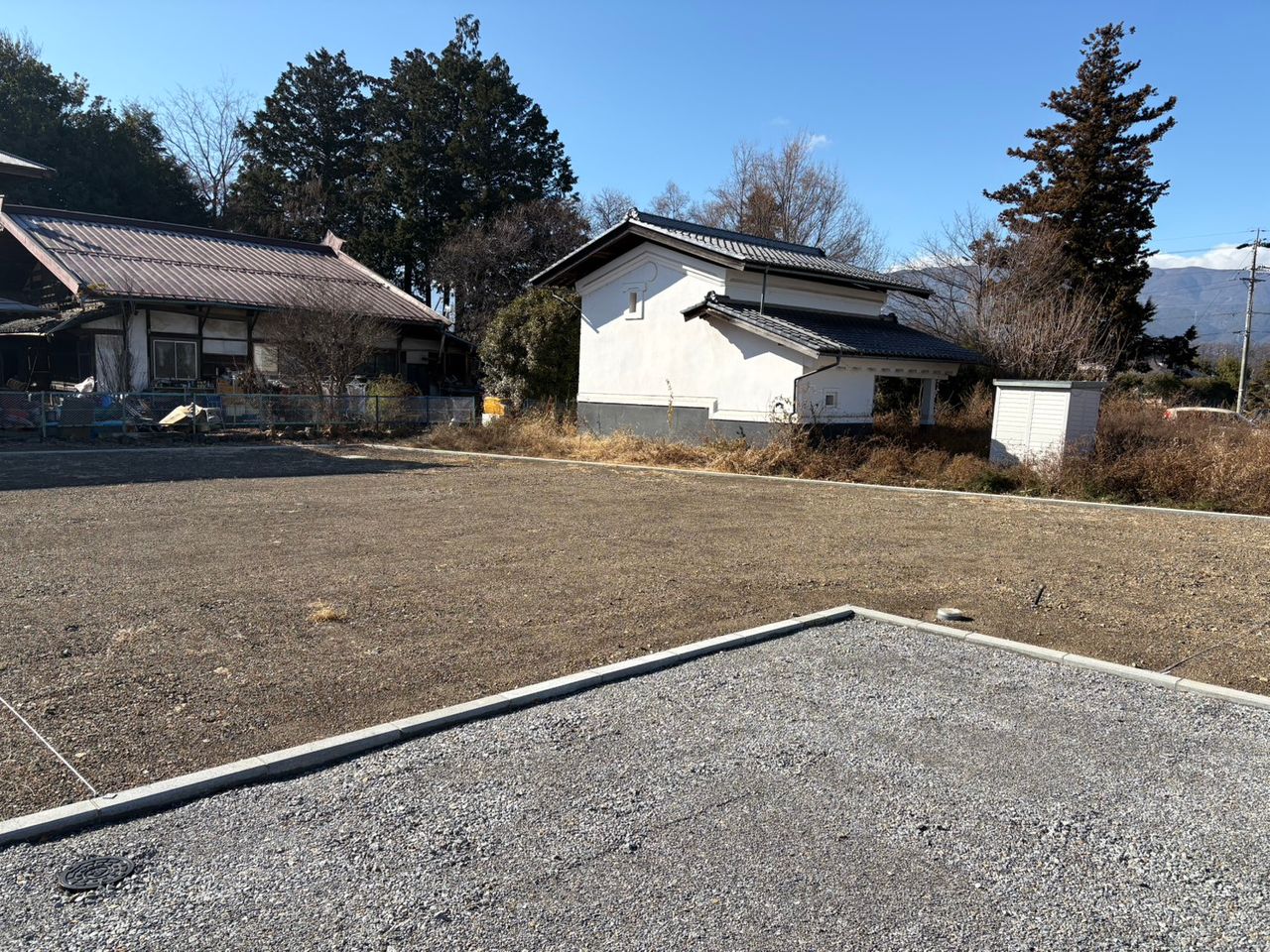 〇 共用の道は現在砕石敷になっていますが、数件住宅が建ってからアスファルト舗装いたします。