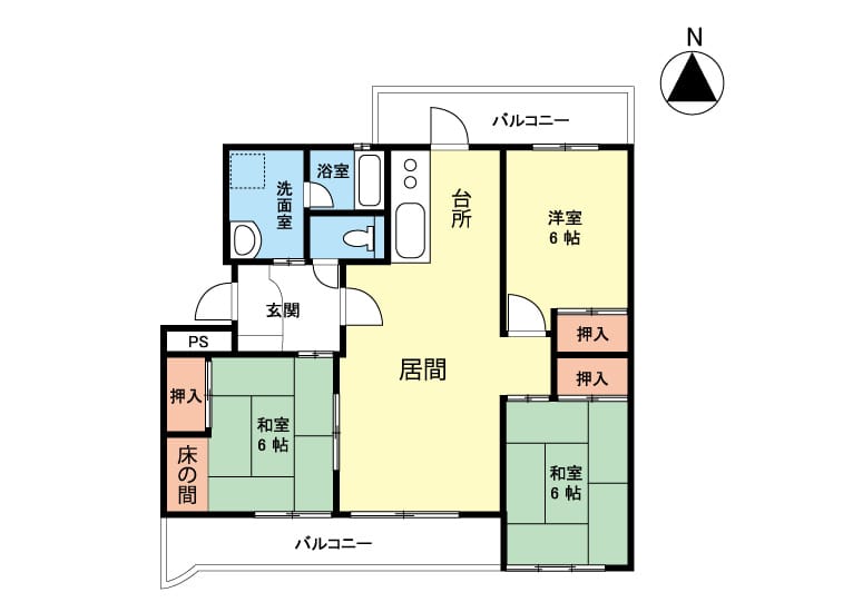 | 間取 | 3LDK(LDK・洋6.0・和6.0・和6.0) |