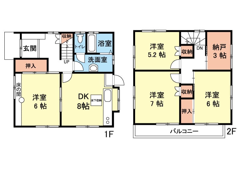 | 間取 | 4SDK(DK8 洋室7 洋室6 洋室5.2 和室6 納戸3) |