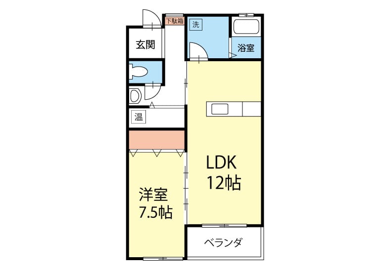 | 間取 | 1LDK(洋7.5・LDK12) |