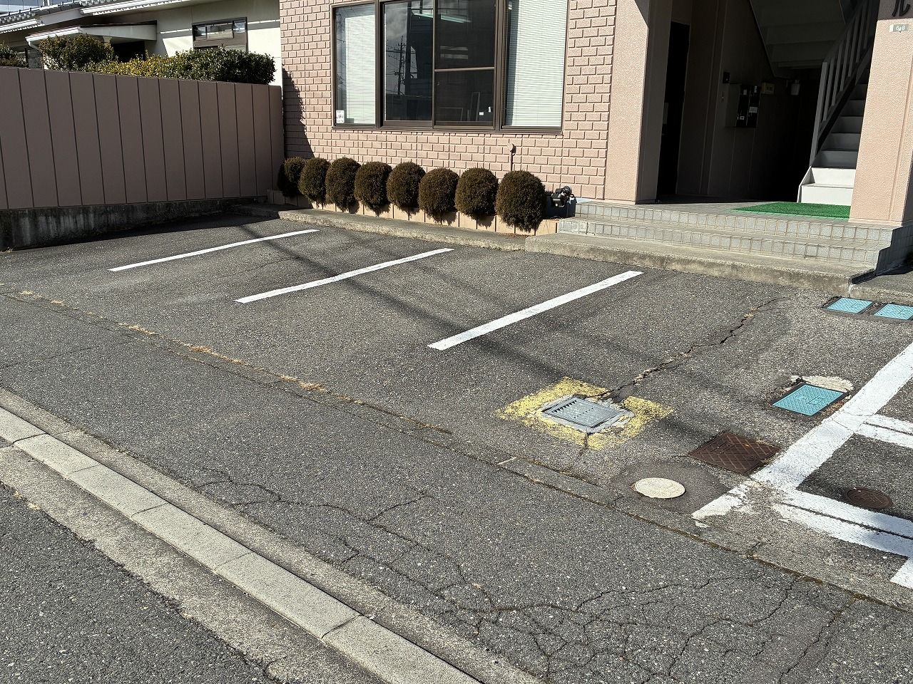 駐車場3台無料。来客者用駐車場も共有で備えています。