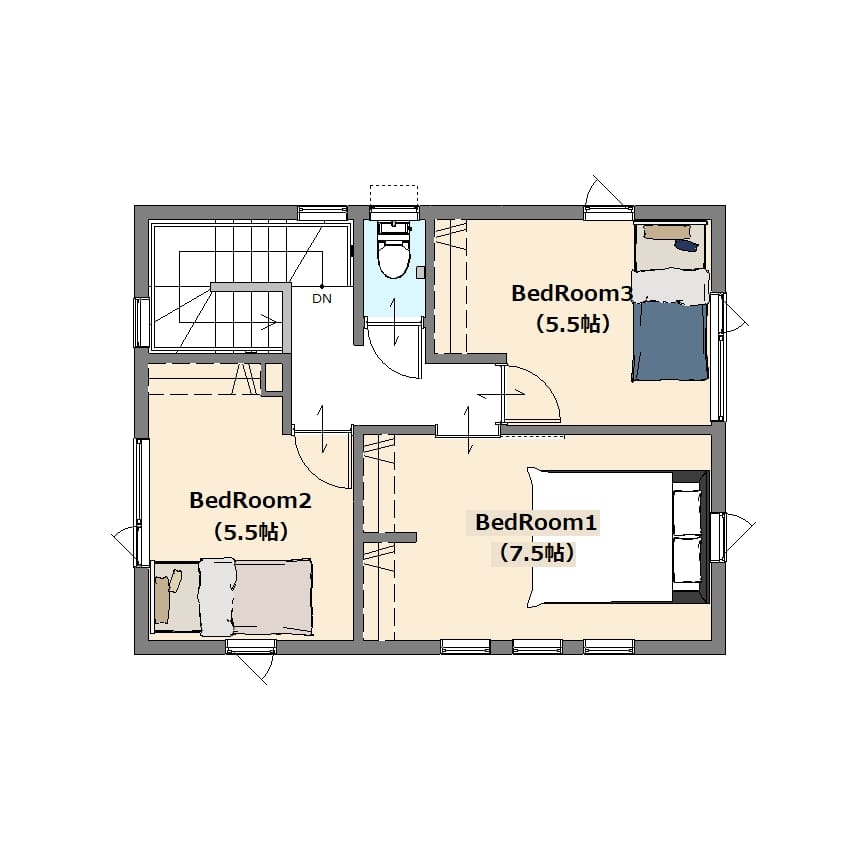 - 間取3LDK((LDK 11.5帖、洋室 7.5帖、洋室 5.5帖×2室))