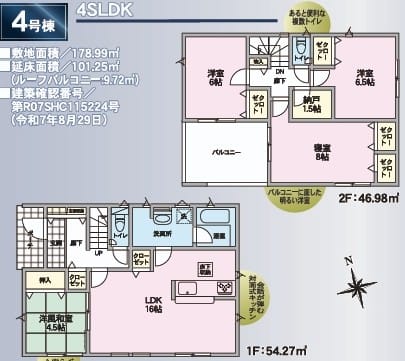 • 間取4SLDK(1階 和:4.5帖 LDK:16.0帖 2階 洋:6.0帖 洋:6.5帖 洋:8.0帖)