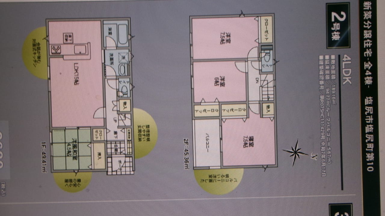 | 間取 | 4LDK(1階 LDK:15帖 和:4.5帖 2階 洋:7.5帖 洋;6帖 寝室:7.5帖 ) |