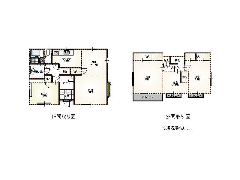 | 間取 | 4LDK(LDK(19帖)・和室(6帖)・2F洋室(9帖・7帖・4.5帖)) |