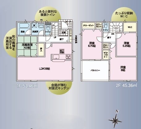- 間取3LDK(1階 LDK21.2 2階 洋6.1・洋6・洋4.5)