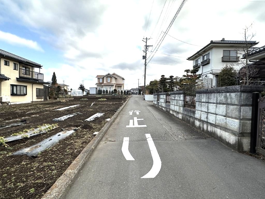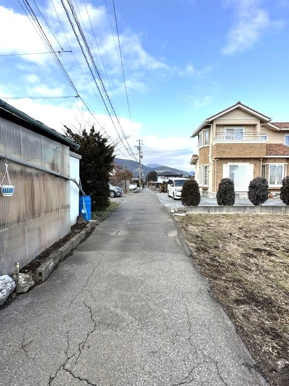 進入道路は狭めで行き止まり、現況でのお引き渡しです。