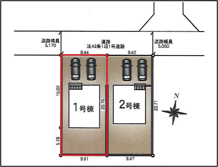 | 接道状況 | 方角:北 道路幅員:5.08m 公私区分:公道 接面:9.44m |