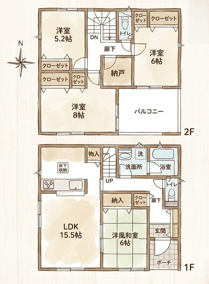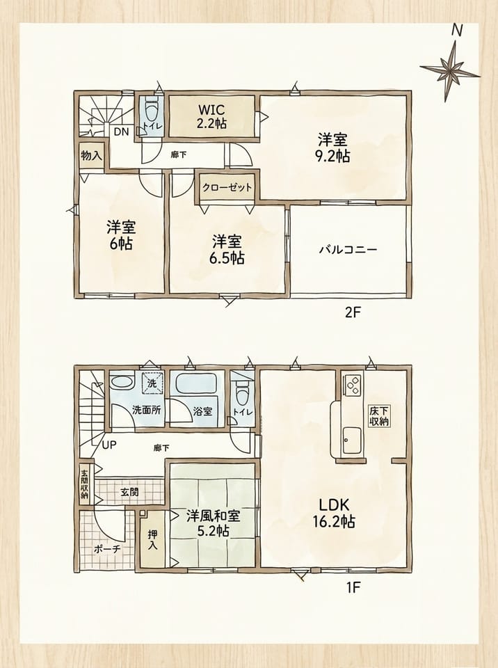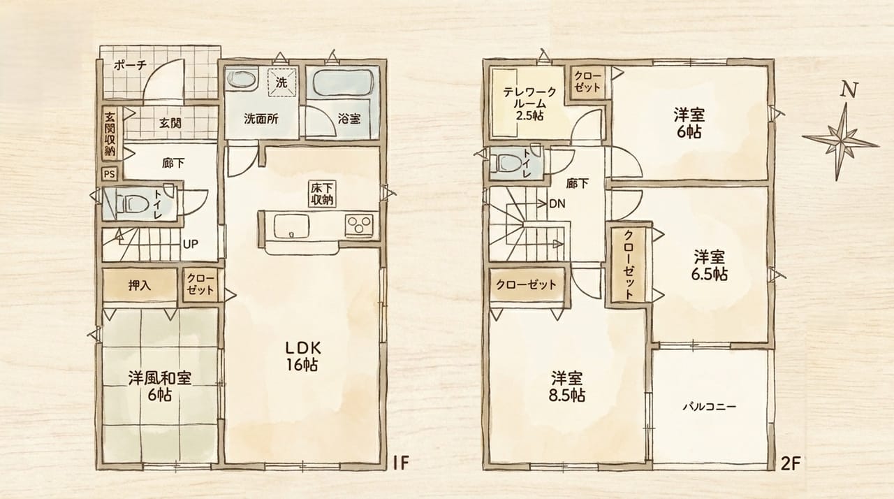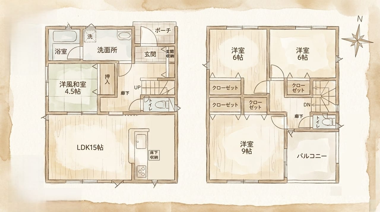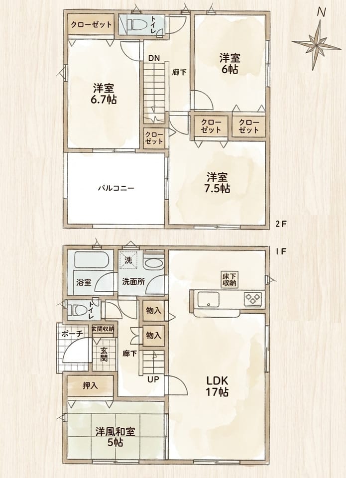 | 間取 | 4LDK(1階:LDK17 和5 2階:洋6 洋6.7 洋7.5) |