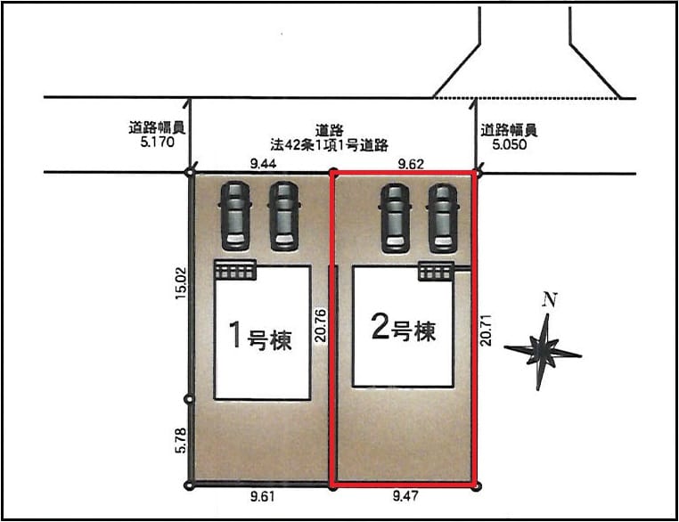 | 接道状況 | 方角:北 道路幅員:5.05m 公私区分:公道 接面:9.62m |