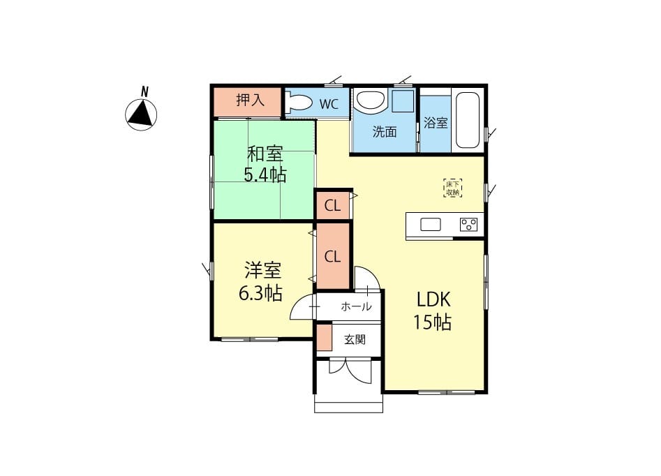 | 間取 | 2LDK(LDK15 洋5.4 洋6.3) |