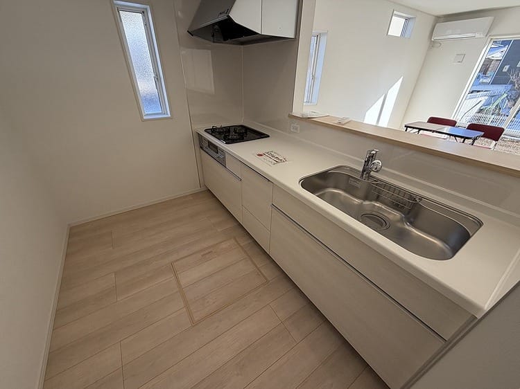 | 設備 | システムキッチン・浄水器・TVモニタ付きインターホン・ディンプルキー・火災警報器(報知機)・暖房便座・温水洗浄便座・浴室乾燥機・トイレ2箇所・追焚機能・ルーフバルコニー・床下収納・閑静住宅街・24時間換気システム・プロパンガス・複層ガラス・駐車場3台分 |