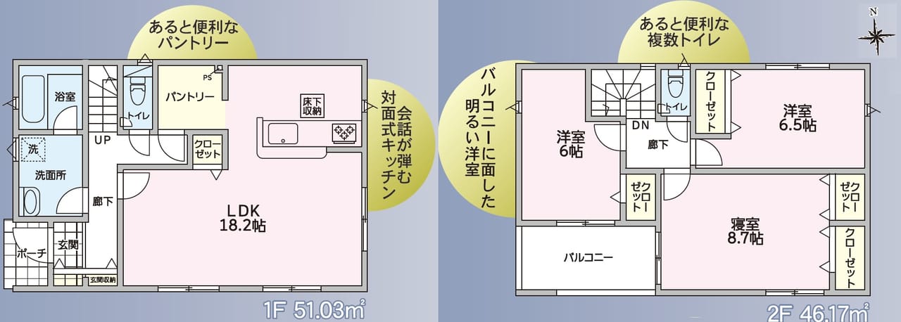 - 間取3LDK(LDK18.2帖、洋8.7帖・6.5帖・6帖)
