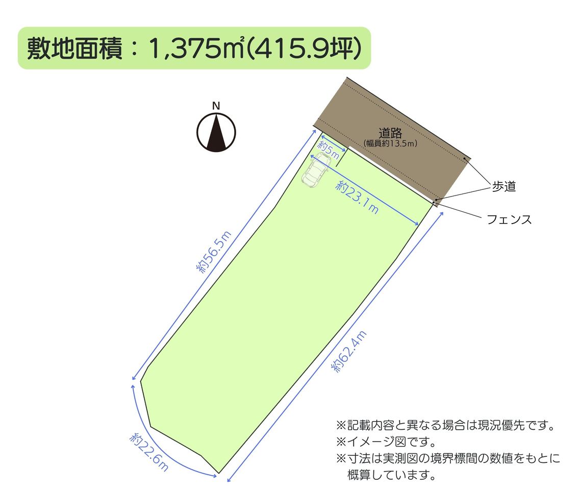 | 土地面積 | 1375m²(公簿) / 415.93坪 |