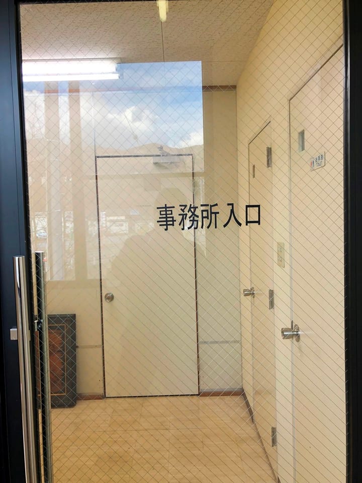 ローソン2階事務所エントランス・給湯室・シャワートイレ・共有B室(個室・倉庫付3.24㎡)角地2方向道路南8,0m公道、接面57.0m・西12.0m公道接面32.0m・エアコン・ガスストーブ・入口モニター・NTT光回線・wifi付