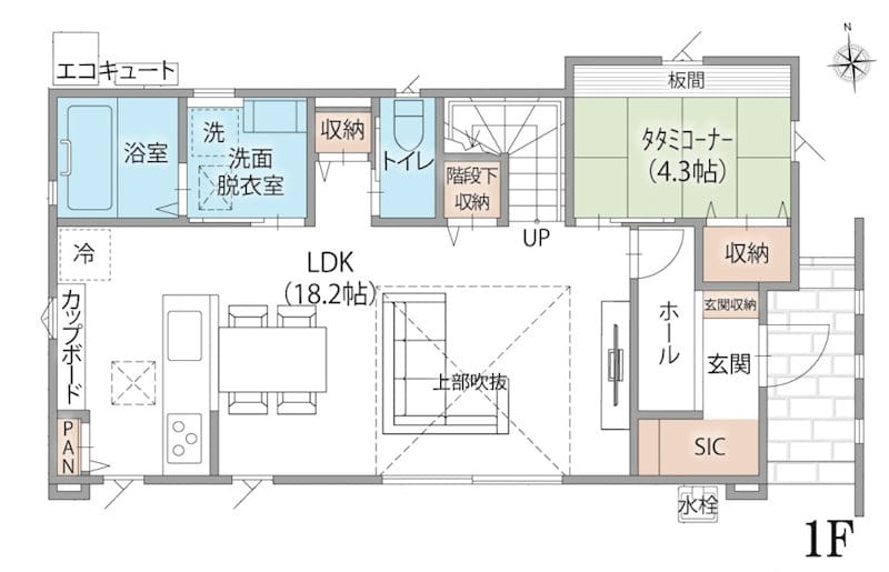 | 設備 | システムキッチン・IHクッキングヒーター・食器洗浄乾燥機・TVモニタ付きインターホン・浴室乾燥機・バス1坪以上・トイレ2箇所・エアコン・ウォークインクローゼット・24時間換気システム・オール電化・制震構造・吹抜・給湯・洗髪洗面化粧台・上水道・下水道・電気 |