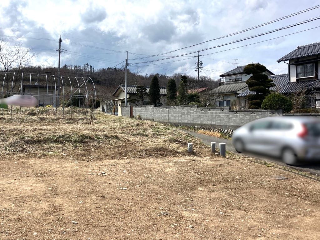 敷地北西角より、前面道路と敷地全体