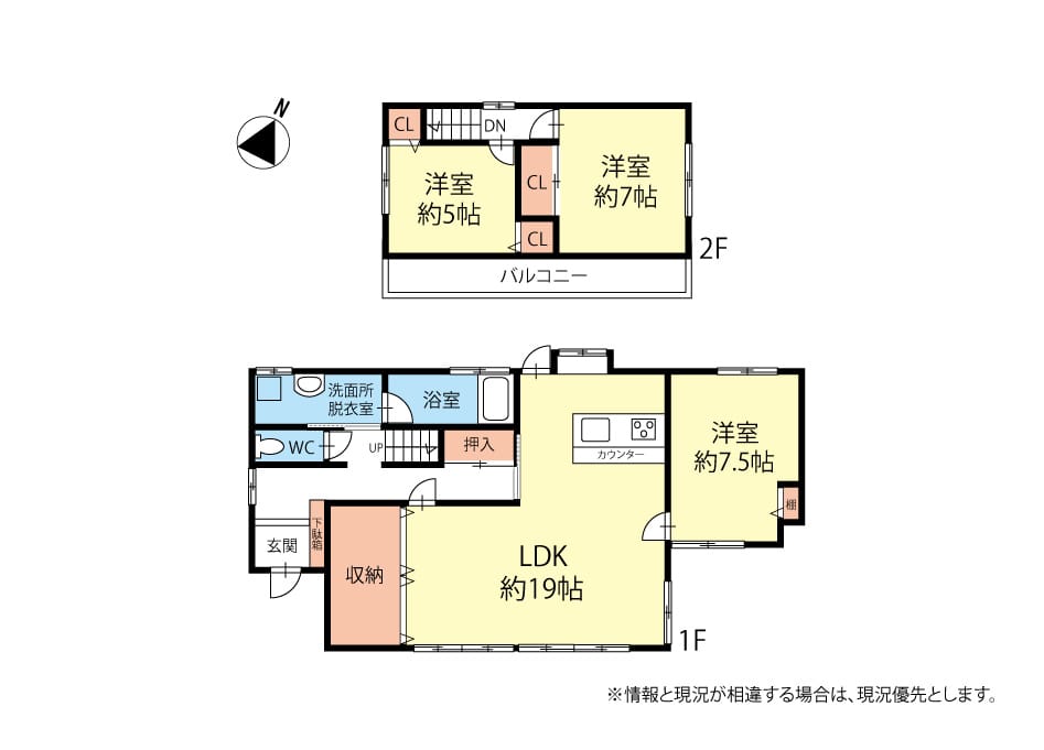 - 間取3LDK(LDK約19帖、洋約7.5帖、洋約7帖、洋約5帖)