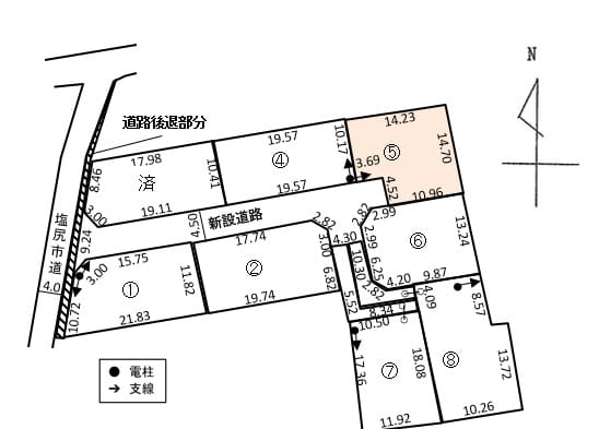 | 備考 | 実測精算 支線有り 他の法令上の制限 農地法 塩尻市農業委員会経由 (農振除外)令和6年7月17日 6農第212号の3 (農地転用許可)長野県指令6松農第5号の124 特定建築条件付き宅地分譲 |