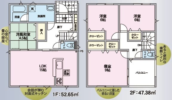 - 間取4LDK(LDK:15帖 洋室:6帖 6帖 9帖 洋風和室:4.5帖)