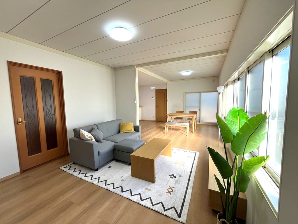 日当たりの良い明るいおうちで、新しい暮らしをはじめませんか?リフォーム済みの中古住宅なので、きれいなお部屋で気持ちよく新生活をスタートできます。日差しがたっぷり差し込むリビングは、毎日を明るく包み込んでくれる心地よい空間です。