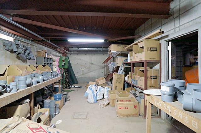 昭和55年築ながら、広々とした地下倉庫(約178㎡)は資材や在庫管理に重宝する空間。