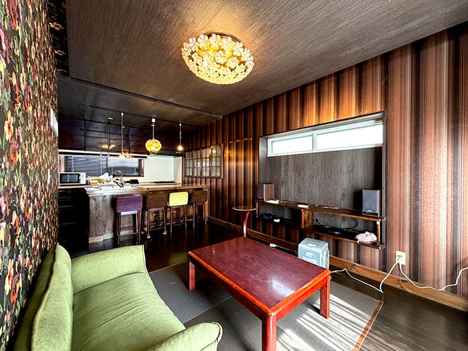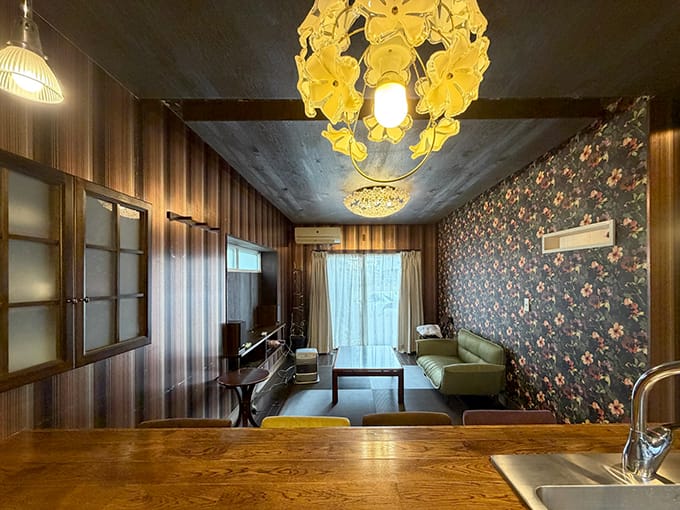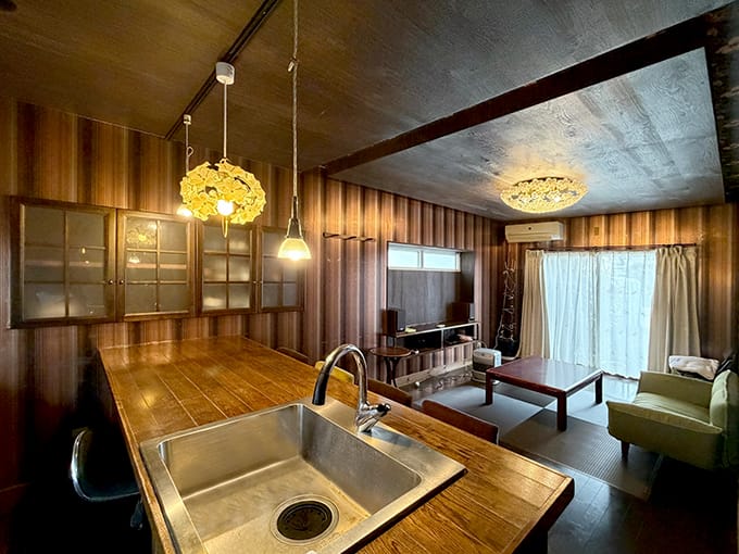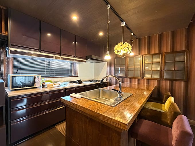 室内にはバーカウンター風のスペースもあり、家にいながら大人のくつろぎ時間を楽しめるのも魅力の一つです。