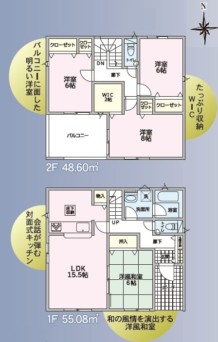 - 間取4SLDK(LDK15.5帖、洋風和室6畳、洋室8帖・6帖・6帖、WIC2帖)