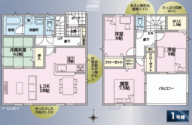 間取 4LDK(LDK18帖、洋室7.5帖、洋室6帖X2、洋風和室4.5帖)
