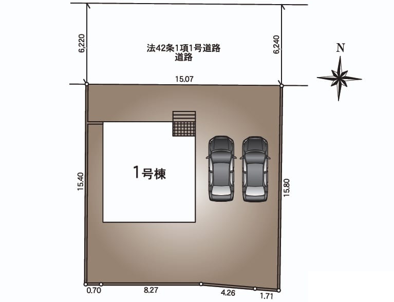 接道状況 方角:北 道路幅員:6.22m 公私区分:公道