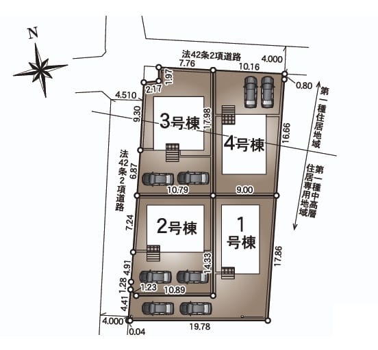 | 接道状況 | 方角:西 道路幅員:4m 公私区分:公道 方角:北 道路幅員:4m 公私区分:公道 |