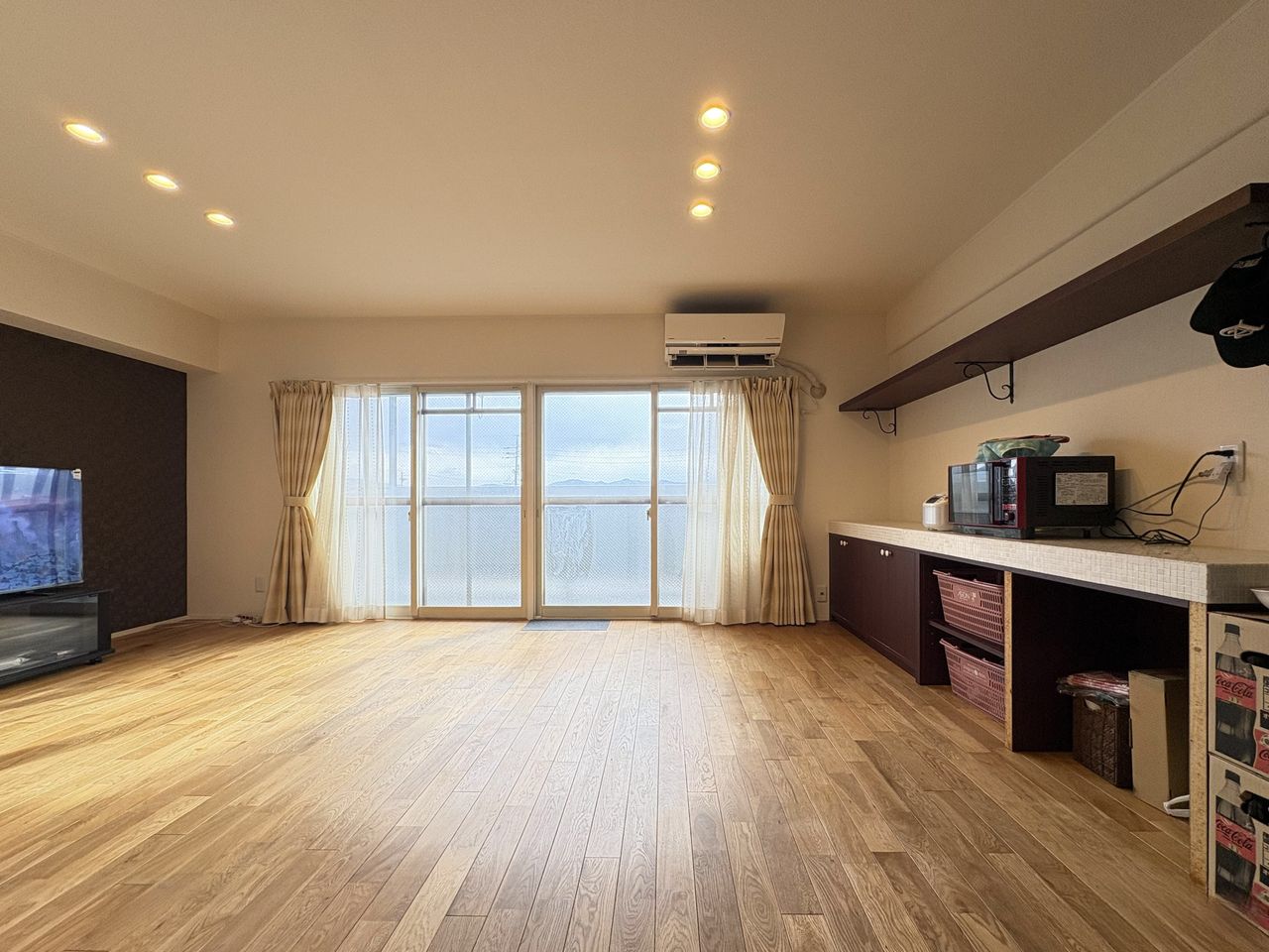 リビングはアクセントクロスを貼るなど、きれいでおしゃれな内装に。