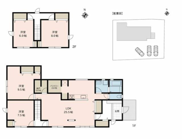 | 間取 | 4LDK(LDK25.5、洋9.5、7.5、8、6) |