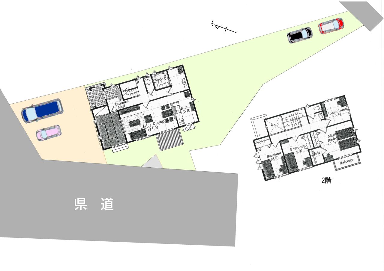既存建物が有るため売主により解体後、更地での引渡し。北側で接する2項道路は進入路が狭い。
