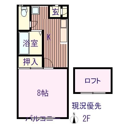 こまくさ道路沿い、一人暮らしに適したロフト付きアパートです。コンビニ、ドラッグストア近く、バス停徒歩1分。